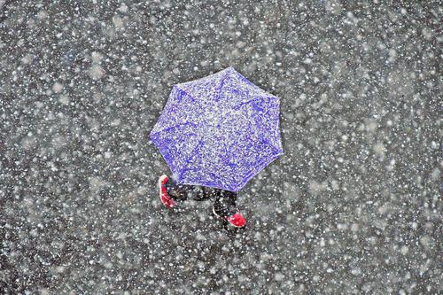 11月28日,行人在山东省烟台市街头冒雪出行。 新华社发(孙文潭 摄)今天北方降雪缩减 西南地区等地仍有大范围阴雨