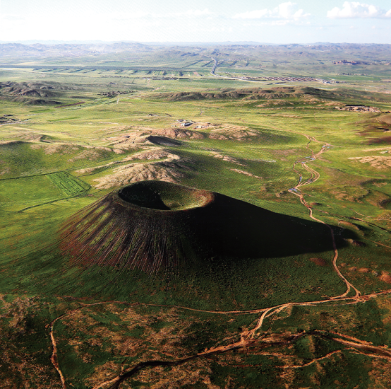 乌兰哈达火山地质公园,集聚着草原火山群、熔岩地貌及堰塞湖景观,被誉为天然的“火山博物馆”。