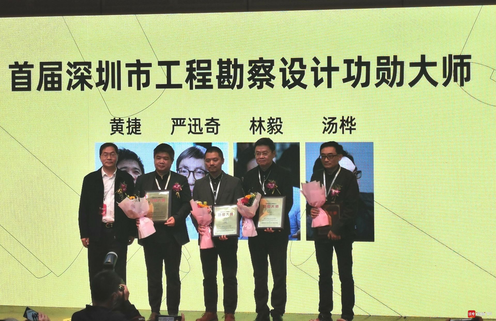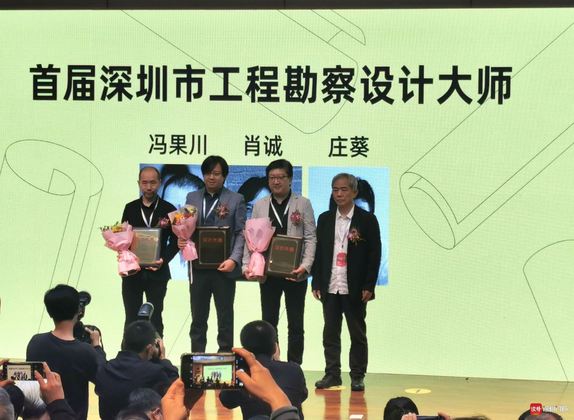12月2日,首届深圳市工程勘察设计“三师”称号授予仪式在何香凝美术馆举行。31位获得“三师”称号的建筑和绿色建筑专业的设计师(代表)出席活动并上台接受称号授予。