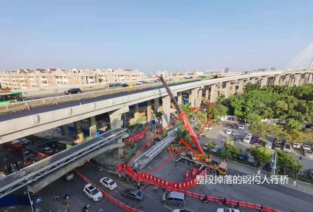 今早,有番禺洛湖居业主反映,洛溪大桥在建的人行桥整段掉了下来。有围观居民在现场看到保利长大公司的郑书记,郑书记向居民称掉落原因正在调查,请大家不要围观。