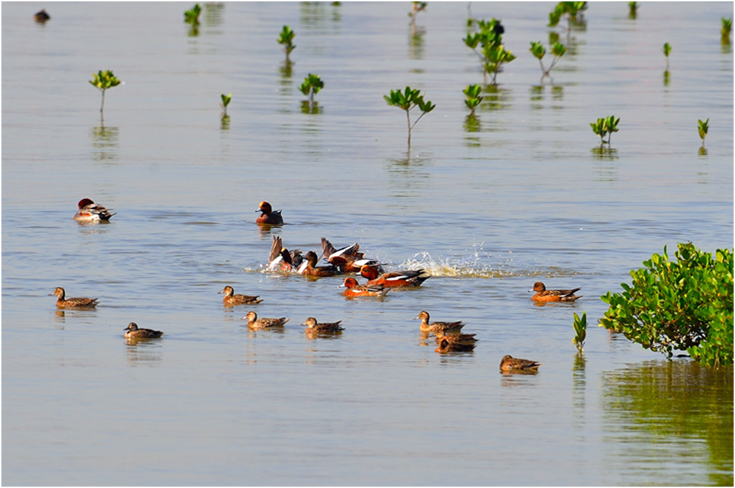 其中包括,开展深圳湾滨海红树林湿地生态修复工程,系统地修复了深圳湾滨海湿地,恢复了红树林生态功能,改善了越冬或过境候鸟的栖息生境;实施基围鱼塘生境主动式改造管理,采取人工营造高潮位鸟类栖息地、科学调控水位、控制芦苇自然扩散、降低鱼塘周边植被高度、减少人为干扰、科学引导游客参观等措施,为迁徙过境和越冬的数万只水鸟提供了一个良好的栖息地。在深圳这座寸土寸金的城市腹地保留下一块绿色净土、一片原生态的保护区。