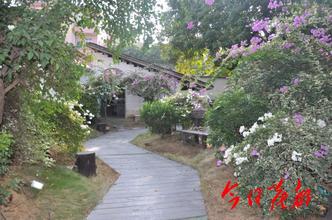 庭院里的繁花在微风中轻摆