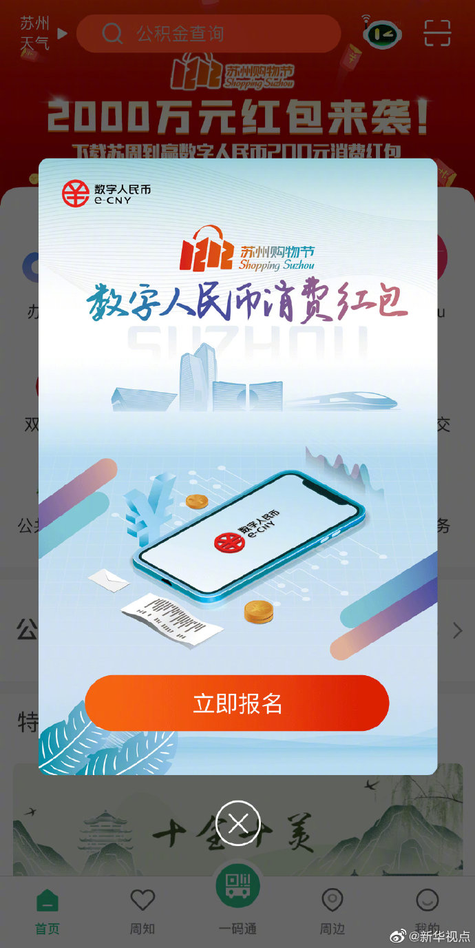 5日一大早,苏州市民顾先生就通过手机在“苏周到”App上进行了登记。“深圳发放数字人民币红包后,我就一直盼着同为试点城市的苏州赶紧推进,终于迎来了这天。”顾先生兴奋地说。