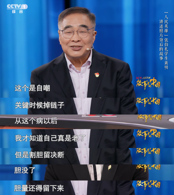 这张照片是今年年初,张伯礼院士的学生黄明偷偷拍下来的。当时,当时张伯礼院士做完摘胆手术仅3天,就又投入方舱医院建设工作。他把外套拉链拉到最上面,只为藏住病号服,不愿同事担心。说起这段经历,张伯礼笑了:“胆没了,胆量得留下来!”