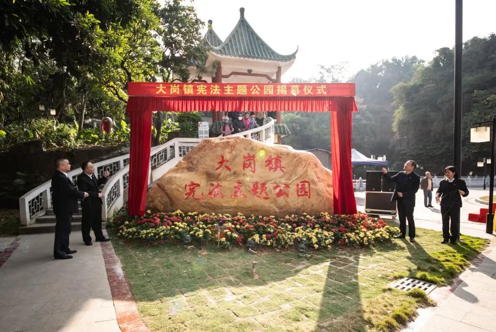 据了解,大岗镇宪法主题公园依托大岗公园而建,坐落于大岗镇潮福街大岗公园东门入口区域,占地16650平方米,包含宪法广场、法治平台、尚法长廊、律苑、法之书角等几大特色观赏点。