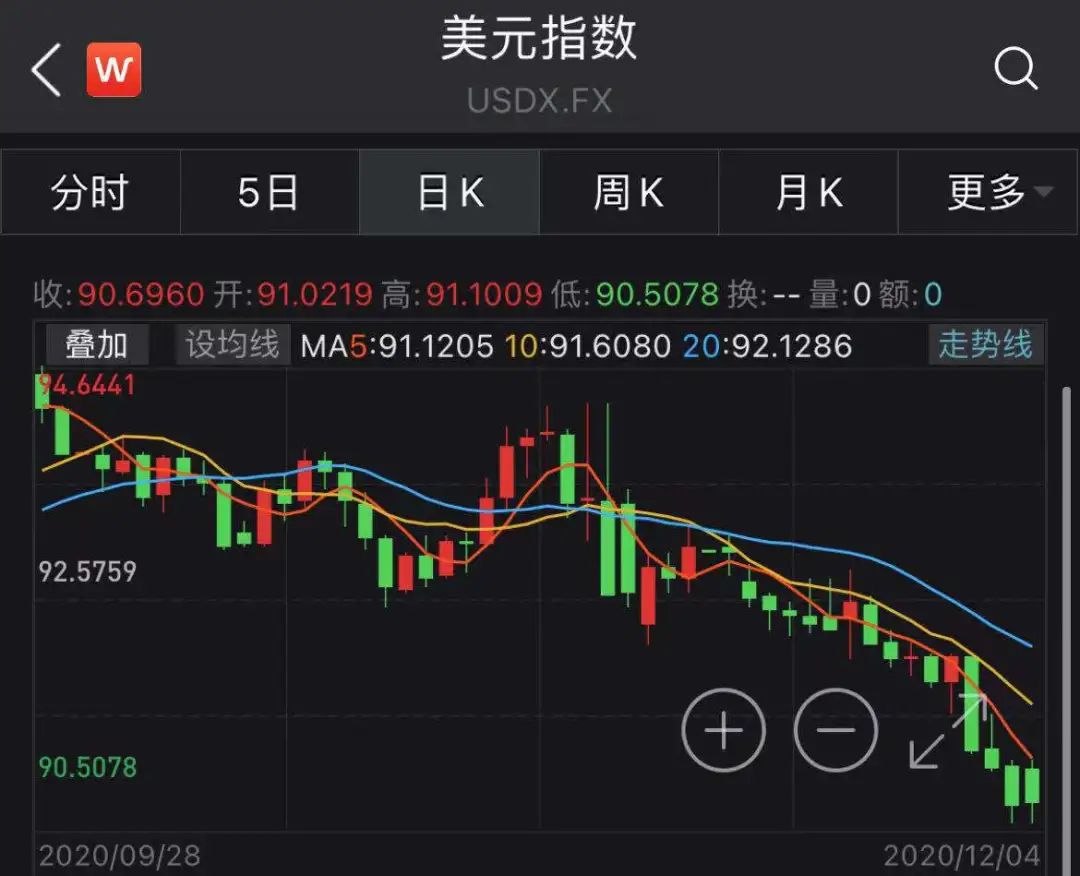 他认为,“新总统上台将无法逆转上述前两个因素,避险情绪也将随着疫情的控制和疫苗研发出现突破而逐渐趋稳,因此,美元指数长期仍将继续下行。”