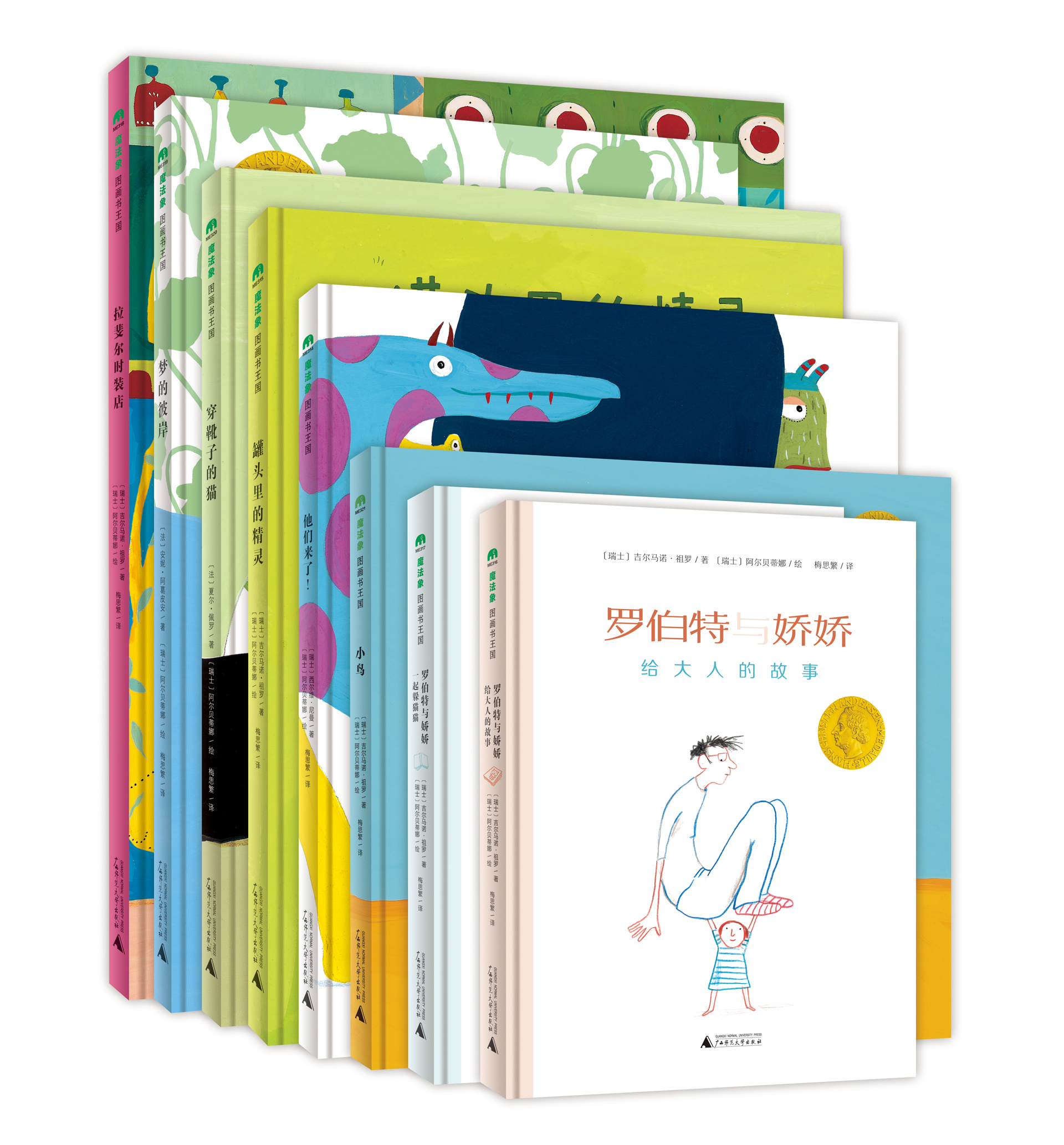 国学大师和美学大师朱光潜说过,美感是一种潜在竞争力,为孩子插上高飞的翅膀。而且,这套美育经典宛如一盒色彩缤纷、口味多样的巧克力礼盒。打开这套书,会发现多重惊喜,收获多种滋养:《他们来了!》:开学了,原来老师也会害怕、恐惧。一个紧张、热闹的故事,帮助老师和孩子舒缓开学焦虑,安心迎接新学期;《罐头里的精灵》:一个温馨治愈的童话故事,一则充满智慧的现代寓言。巨大的幸福,常常藏在微小、简单的事物里。《罗伯特与娇娇:给大人的故事》和《罗伯特与娇娇:一起躲猫猫》:和你在一起的每一刻,都是那么可爱温柔,闪闪发光;《拉斐尔时装店》:让孩子被瞩目的,不是华丽时尚的潮服,而是独立自信的脚步。把美丽的衣服穿上身,是为了与更好的自己相遇;《梦的彼岸》:想象力让我们成为造梦师,去享受华丽的冒险;《穿靴子的猫》:用智慧和善良赢得崭新的人生,同名电影提名第84界奥斯卡最佳动画长片奖;《小鸟》:一个小小的细节,就能让此刻变得如此丰富。一个小小的细节,就能改变世界。