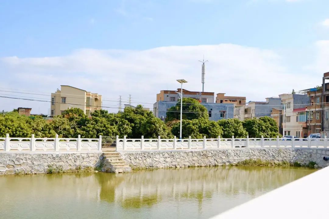▲祠堂前的鱼塘里,修建了亲水步道和凉亭。