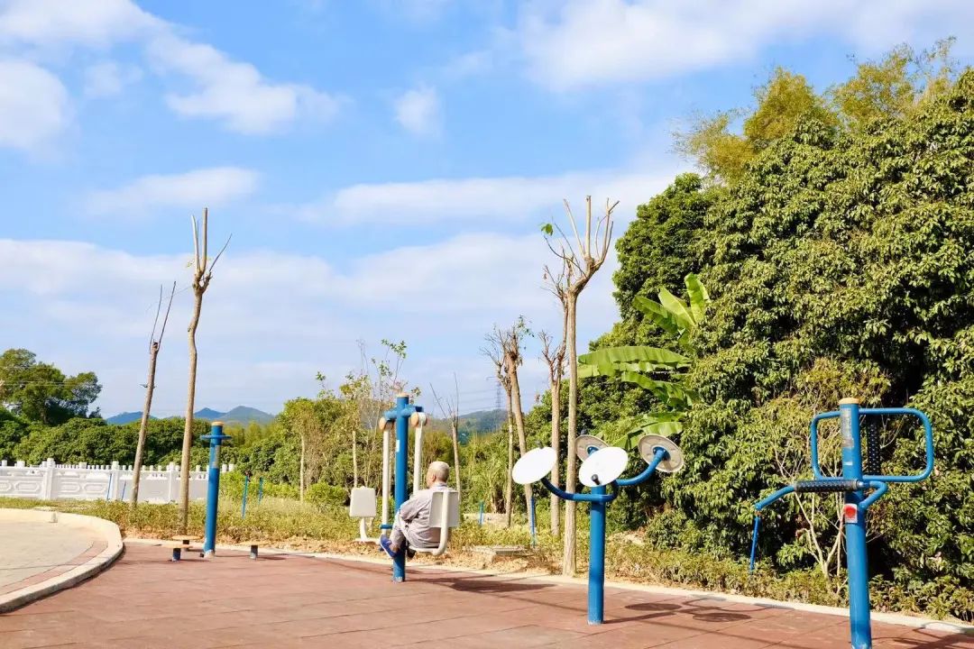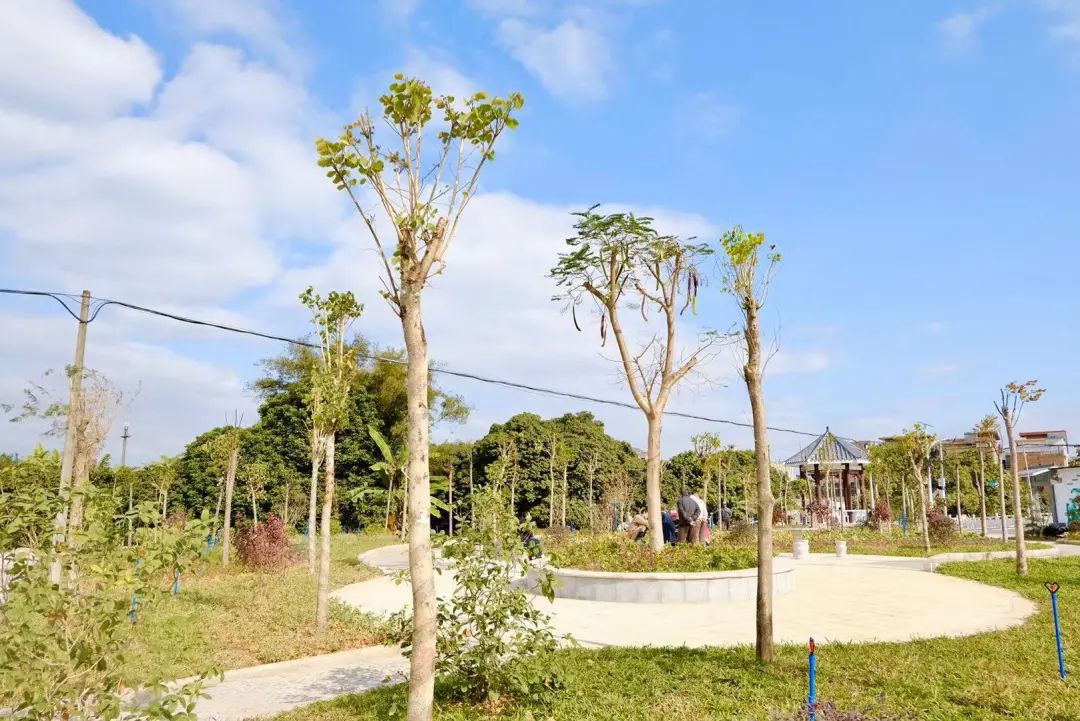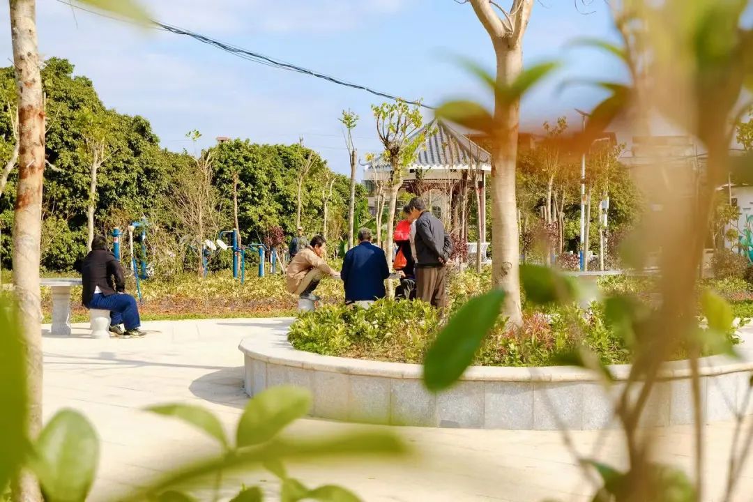 新建的小公园是以其中一个鱼塘改扩建而成,公园里增添了健身器材、休闲步道、石桌石凳等,并增补了各种绿植,配备了灌溉设施,已然成为村民娱乐休闲的好去处。“家里的大人出去工作了,我现在经常带着孙子来小公园里玩。”村民笑着说道。