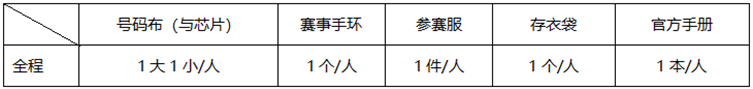 * 全程选手每人两块号码布,一块大号码布(含芯片)和一块小号码布(存衣用);