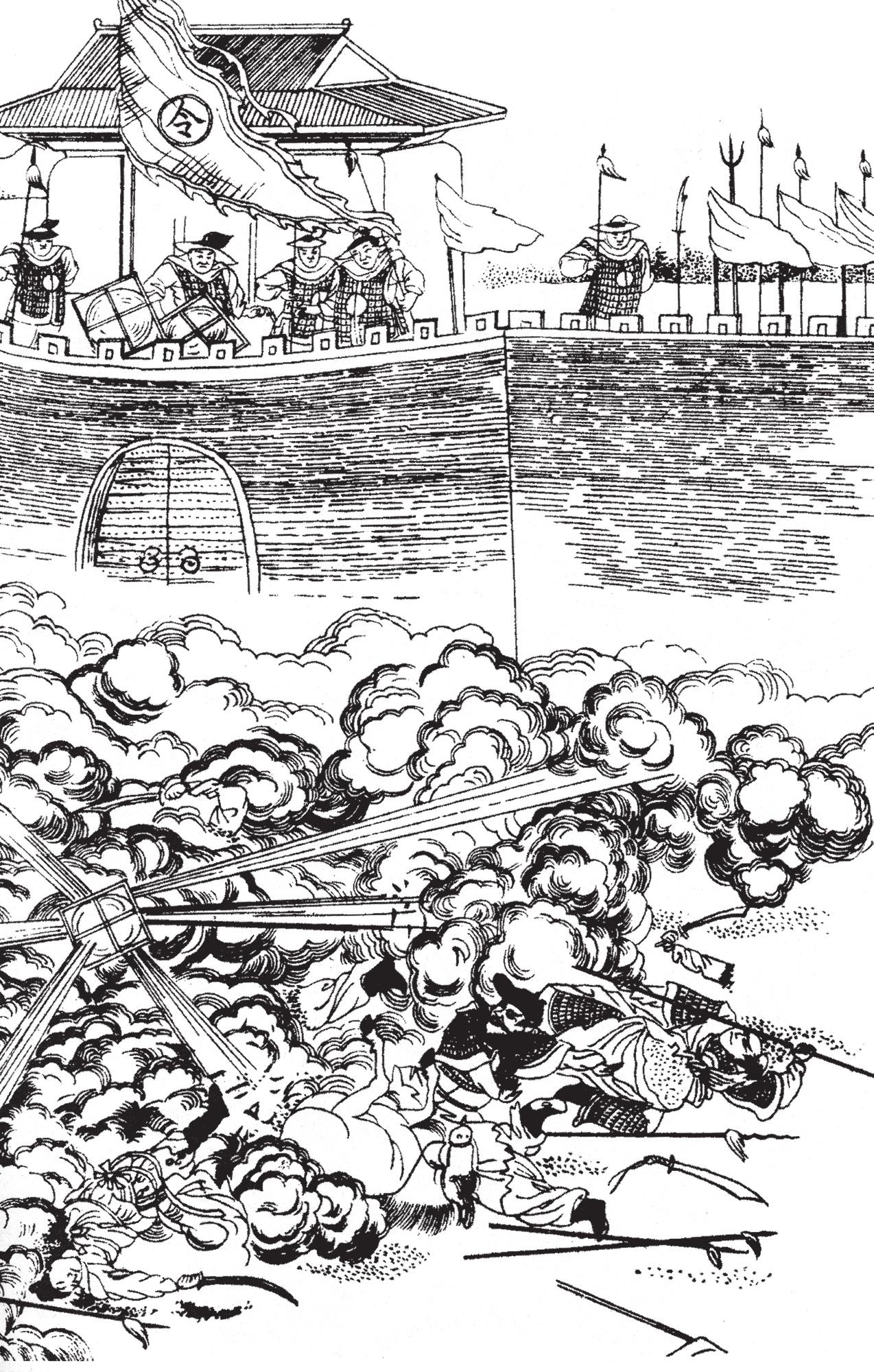 插图翻拍:图为《天工开物》中所载“万人敌”爆炸时的情景。