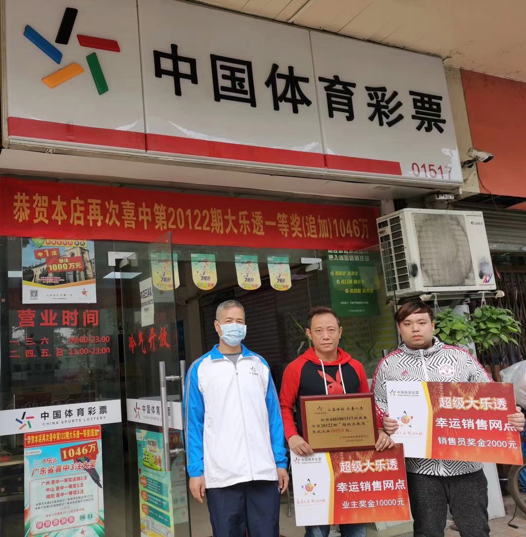 而12月9日当天,4401001517体彩实体店再次获“幸运实体店”称号,其业主获奖励金10000元,销售员获奖励金2000元。