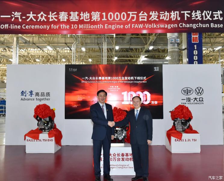 12月10日,一汽-大众长春基地第1000万台发动机正式下线。“从第一台发动机下线到累计产量突破千万,长春基地为保障一汽-大众整车产能提供强劲支撑,对于实施‘全价值链本土化’起到积极的助推作用。”中国一汽党委常委、副总经理,一汽-大众董事、党委书记、总经理刘亦功表示。长春动力总成基地成立25年来,供应了一汽-大众全国各地所有工厂。当前,一汽-大众已打造出EA111发动机、EA211发动机等发动机。其中,EA211发动机具备“轻”“净”“省”“劲”四大优势。值得一提的是,符合国六b标准的大众集团全球最新一代EA211 1.5T EVO发动机项目已在一汽-大众长春基地启动。运用米勒循环,APS涂层等先进技术,这款发动机可实现更低碳排放和油耗,预计两年后投产。