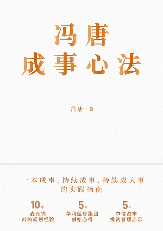 说起冯唐,大家首先会反应出“金线君”来——他曾经说过,写文章,是有金线的。多年来,他的小说和散文一直被很多人吹捧。也以至于“文艺中年”成为他的某个标签。其实,冯唐的人生远不止这么单一,他还有多年的名企管理经验。2020年12月,由磨铁图书策划的《冯唐成事心法》正式与读者见面。冯唐将他10年麦肯锡战略规划经验,5年华润医疗集团创始心得,5年中信资本投资管理启示,全都写进了这本实践指南中,《冯唐成事心法》是冯唐20年持续跨界成事经验的全面总结。