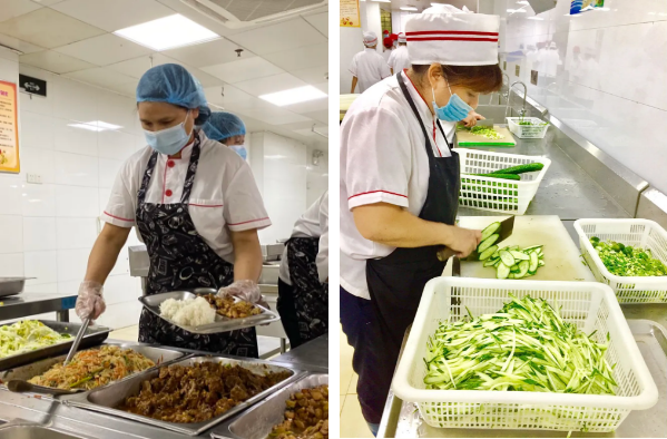 华师初中的学生食堂就餐区域食堂总面积4000多平方米,就餐桌位1800余个,还荣获“广东省A级学校食堂”荣誉称号,给予孩子们的膳食卫生与营养全方位的保障!