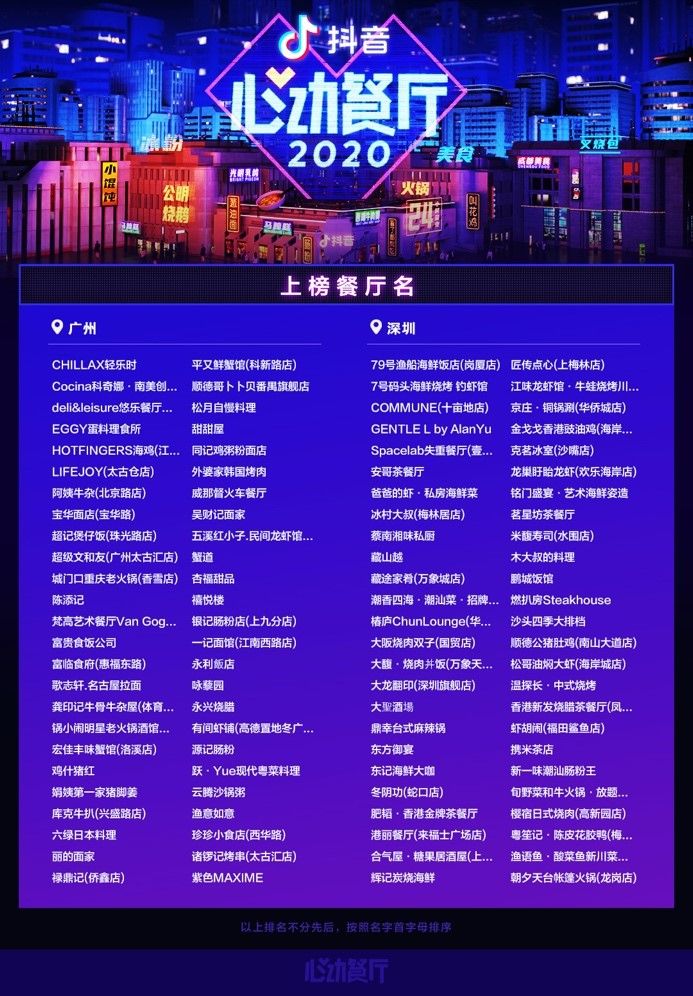 同时,消费者通过线下打卡,直接给入围的“心动餐厅”打分。抖音再根据候选餐厅相关视频数据,结合匿名评审交叉打分,将从人气高低、口碑评价、餐厅特色三个维度评选餐厅。