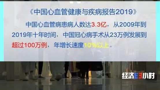 《中国心血管健康与疾病报告2019》显示,中国心血管病患病人数达3.3亿,从2009年到2019年十年时间,中国冠心病手术从23万例发展到超过100万例,年增长速度10%以上。