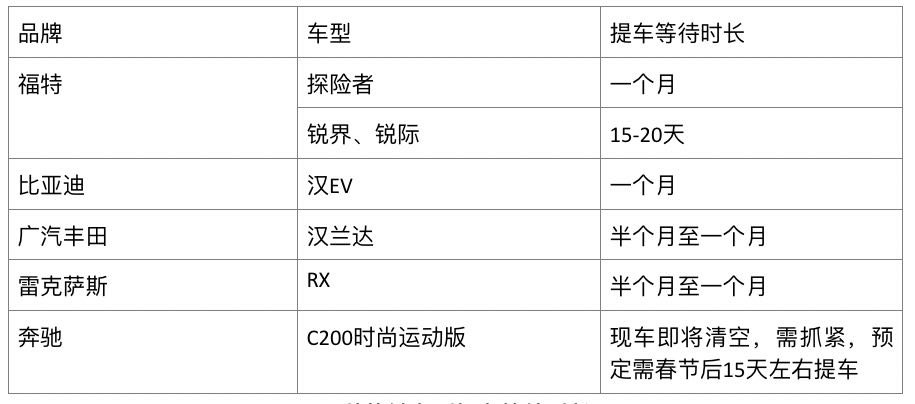 全媒体记者在采访的同时,还作为一名消费者,对热销车型进行了“购买”式体验。以广汽丰田汉兰达为例,目前,汉兰达仍处于供不应求的状态。赶在今年结束之前,走完下订、交车、上牌、补贴整个流程,难度比较大。同样,全新一代飞度、雷克萨斯RX等车型也需要等待,等待时间在半个月到一个月之间。