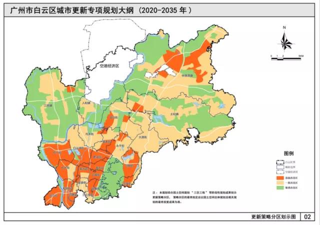 《规划大纲》将白云区划分了鼓励改造区、一般改造区、敏感改造区共三类更新策略分区。