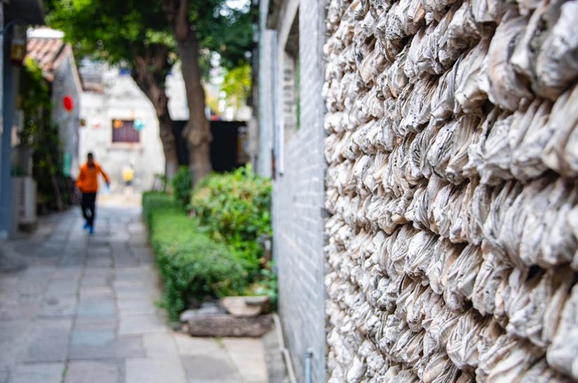 蚝壳墙,是岭南建筑的特别存在。随着历史发展,很多蚝壳建筑消逝了。如今,在广州现存蚝壳墙、蚝壳屋最多的地方,要数沙湾古镇了。