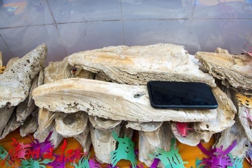 不为人们所知的是,在沙湾古镇北村展览馆珍藏着不少“巨型蚝壳”,这些蚝壳被放置于玻璃展柜中,堆起高高一堆,大约有几十个,个头都很硕大,蚝壳长度大都在30-50cm之间,一个蚝壳重达几斤。