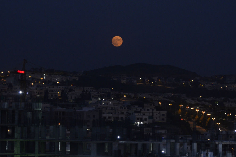 ↑ 这是600mm焦距下在克罗地亚拍摄的“超级月亮”(2020年5月7日摄)。