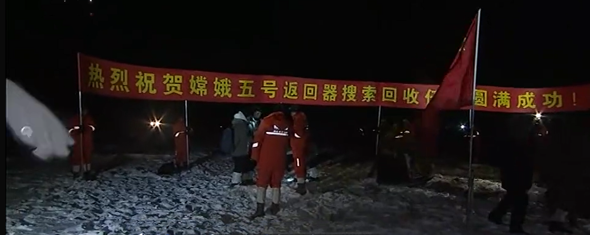 12月17日1时59分,探月工程嫦娥五号返回器在内蒙古四子王旗预定区域成功着陆,标志着我国首次地外天体采样返回任务圆满完成。