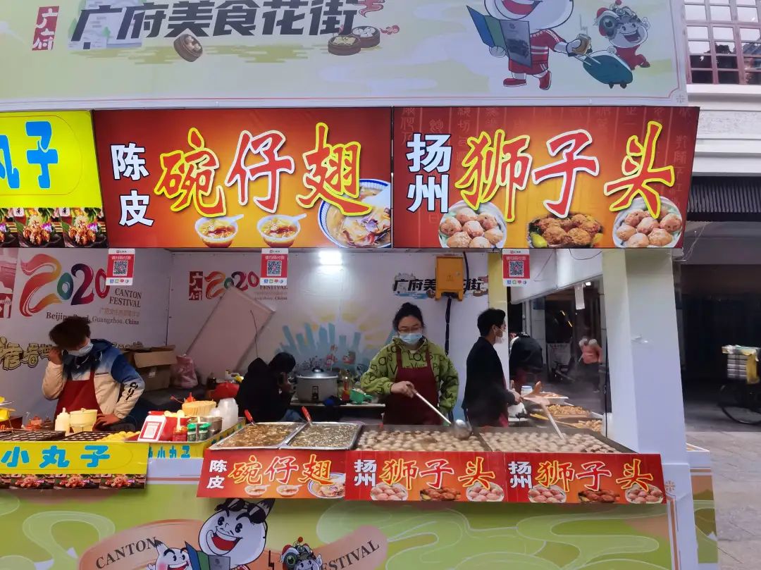 还有扬州狮子头、潮州蚝仔烙、狗不理包子等外地美食,升腾的热气让人望而生津。