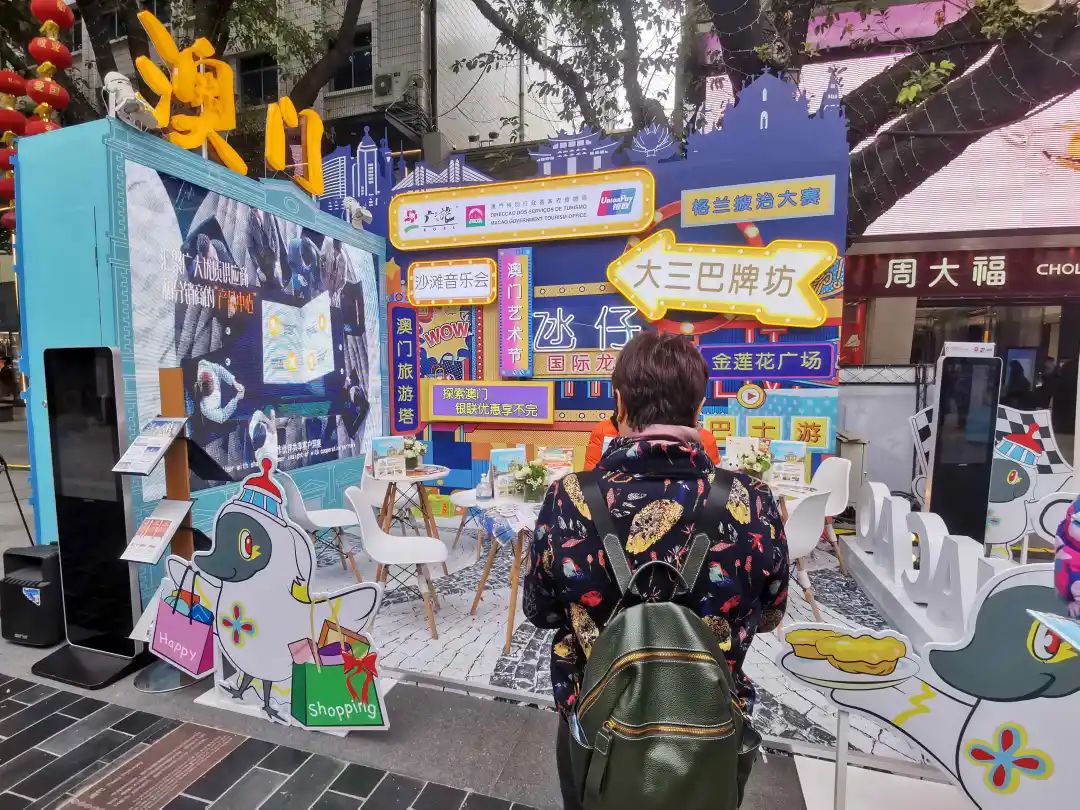 此外,广之旅携手澳门旅游局特别打造的澳门旅游快闪店开张营业,为游客带来了沉浸式旅游体验、焕新旅游产品、优惠政策以及防疫通关指南等丰富内容,华丽的特装展示拍照区域成为了新晋网红打卡地。