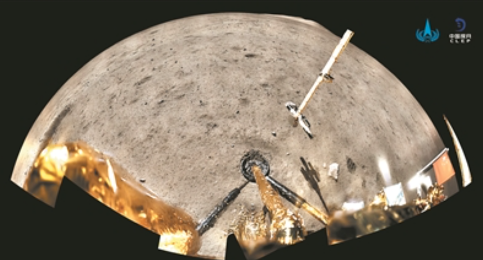 着陆器和上升器组合体着陆后全景相机环拍成像■首次带月壤高速再入返回地球