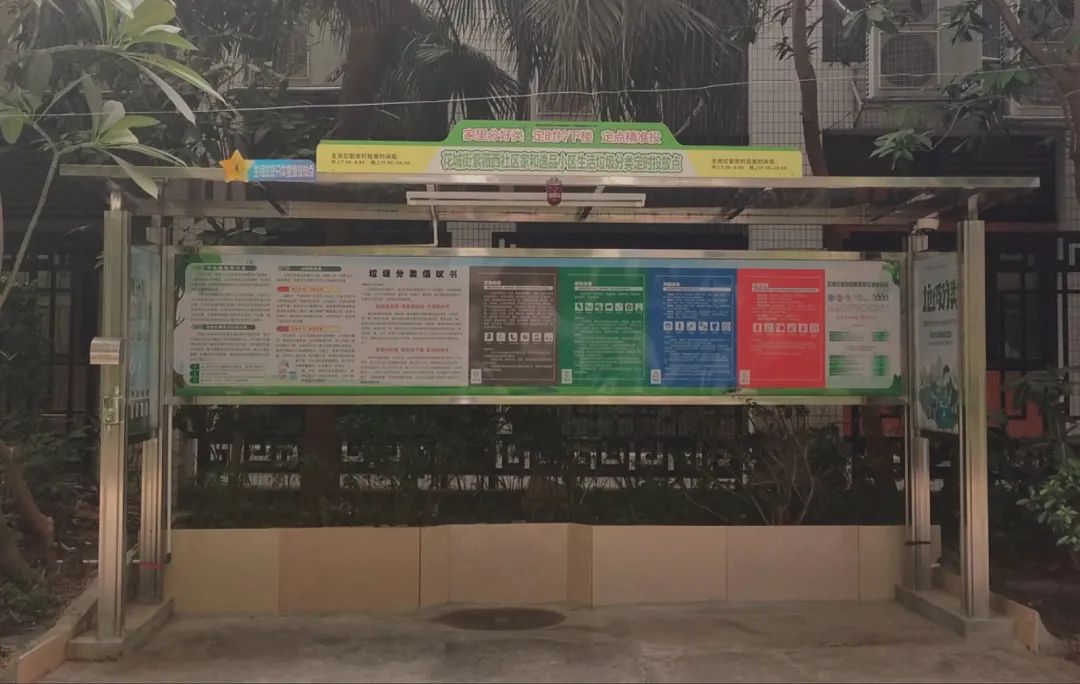 星级生活垃圾投放点覆盖了街道辖区内所有社区,不少投放点有遮雨棚、公示牌、照明设施、洗手设施等,以后居民投放垃圾更方便啦。