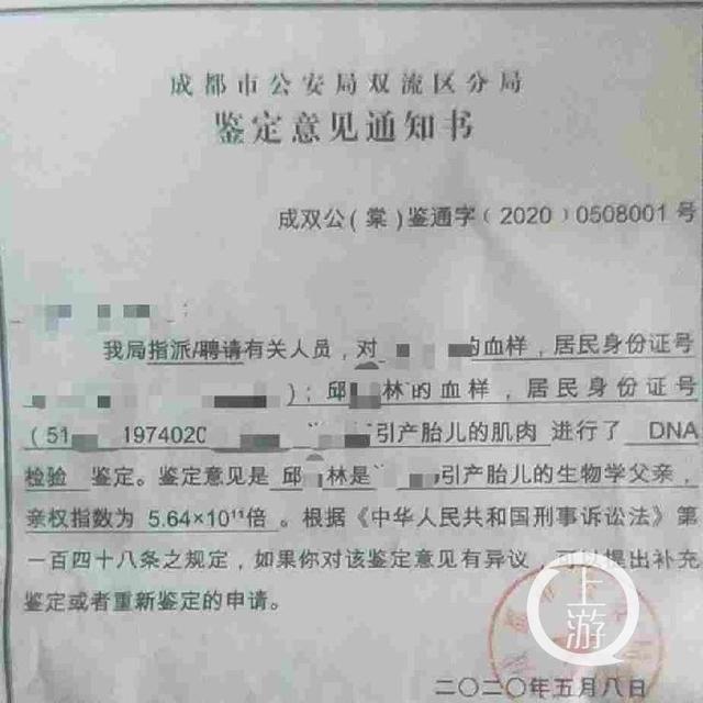 鉴定书证实,邱吉林是小小引产胎儿的父亲。图片来源:受访者提供