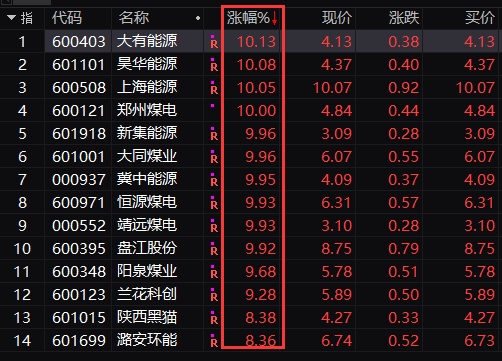 煤炭股集体大涨