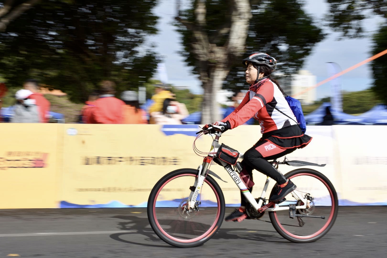 记者现场看到,不少骑友是“父子兵”齐上阵,来自汕尾市实验学校的林韦烨今年只有12岁,在父亲林位彬的带领下,已有2年骑行经验的他今天首次参赛。“主要是带他来感受一下气氛,培养运动的好习惯。”林位彬告诉记者。