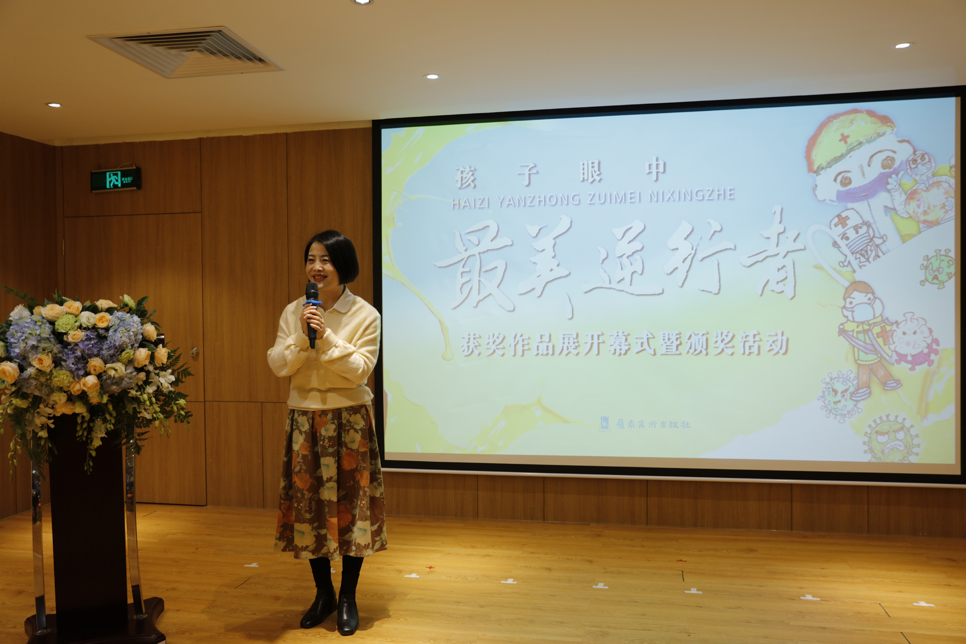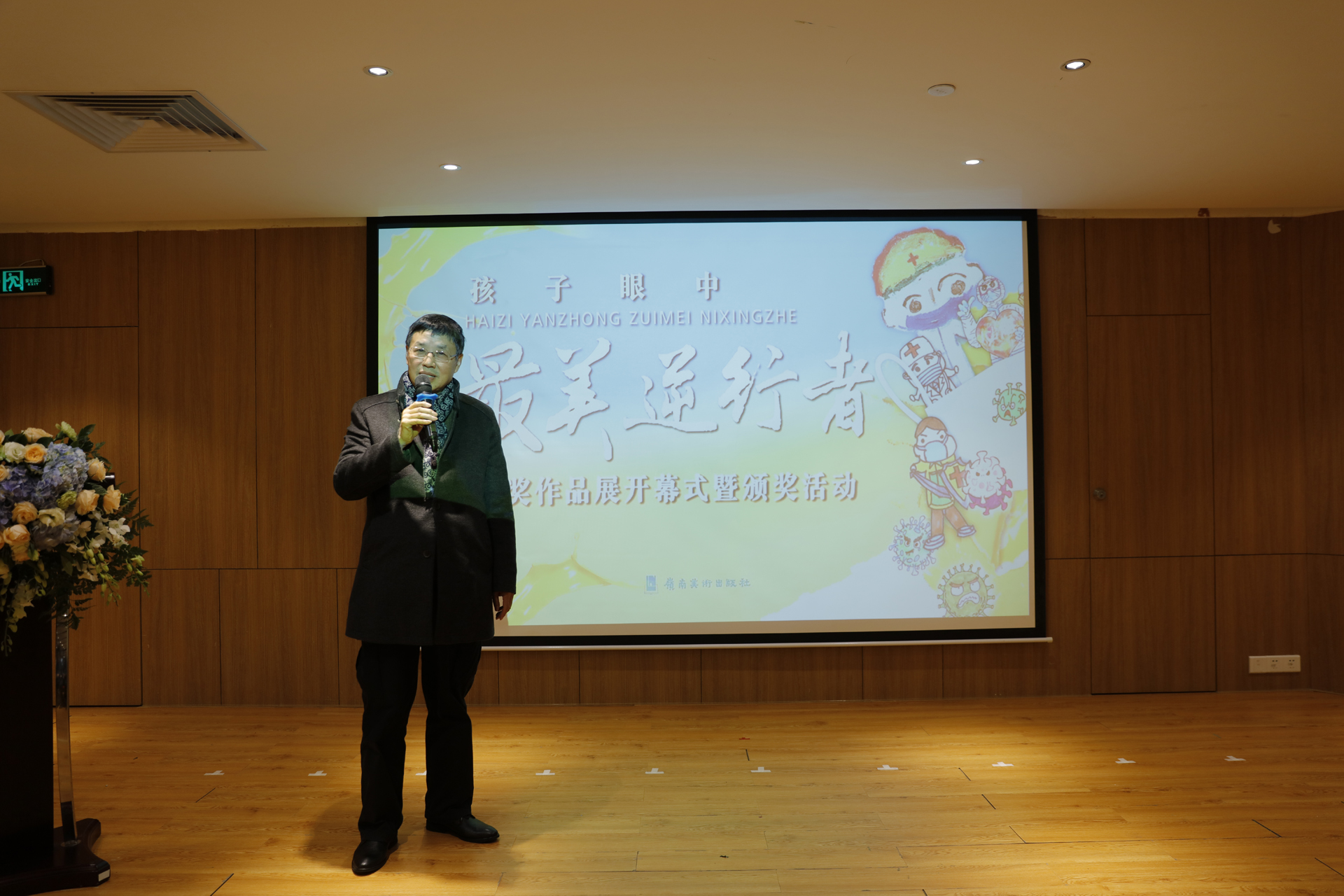 岭南美术出版社副社长谢海宁主持了本次活动,为现场观众讲述了疫情期间岭南美术出版社为全民战“疫”而行动的全过程。让大家看到了通过这次活动,用美术作品和美育理念传递人民在战“疫”中展现的精神和力量。