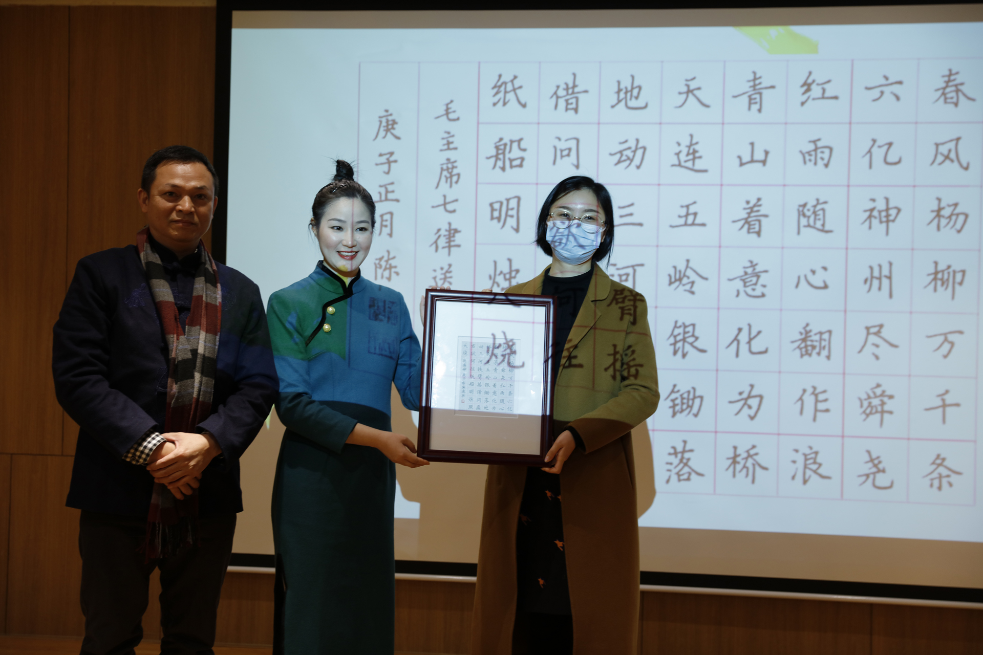 书法名家陈海波现场赠予书法作品《送瘟神》,并现场让孩子上台朗诵。