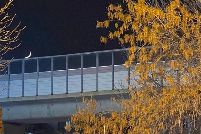 天津市天文爱好者2020年12月17日拍摄的“土木伴月”照片