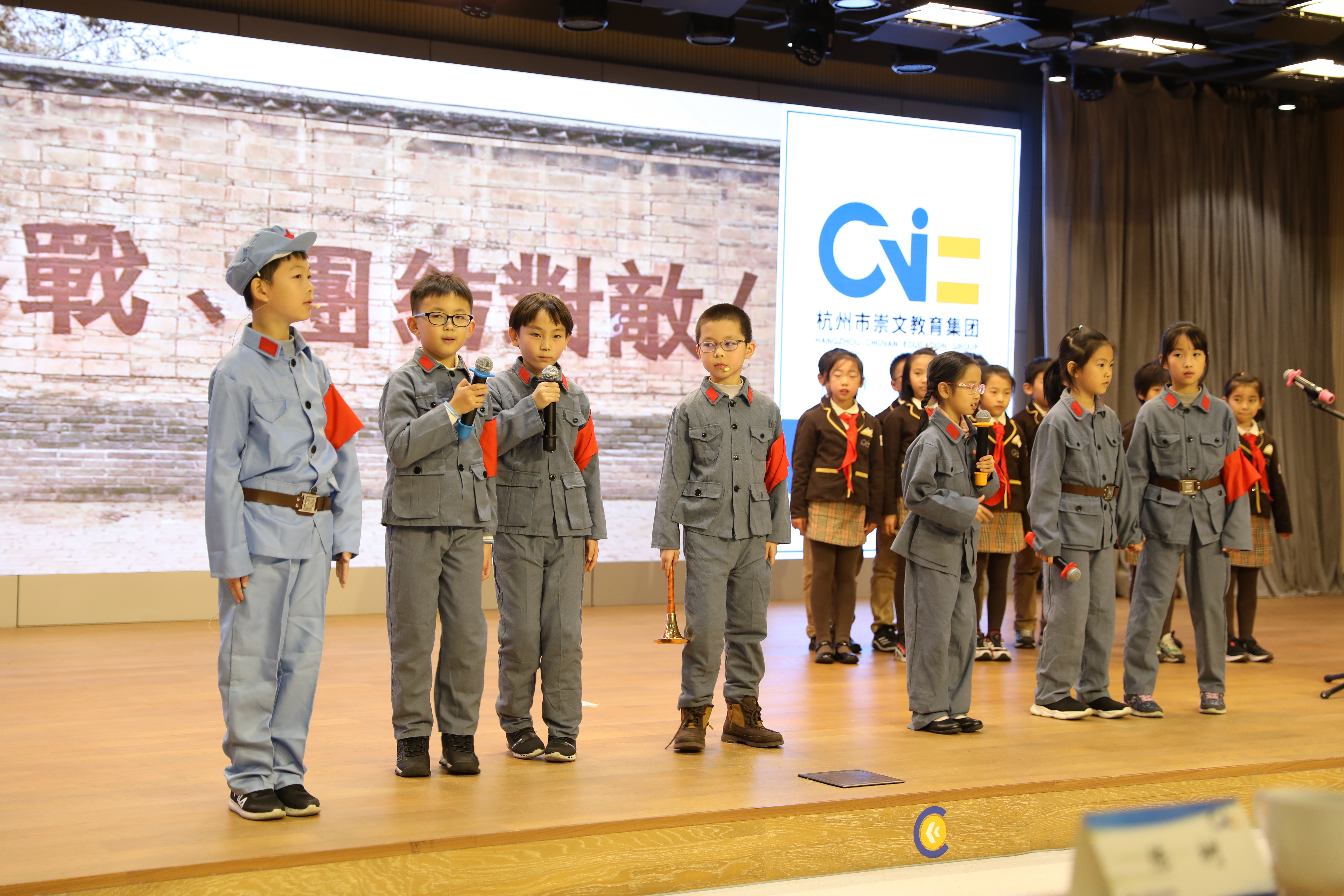 崇文世纪城实验学校三年级的学生换上了红小鬼的服装,用精彩的表演,把《长征·我是小红鬼》这本好书推荐给全国的小读者,让小读者们深切感受到长征路上的小哥哥们不畏艰难、英勇顽强的革命精神,铭记长征精神,传承红色基因。