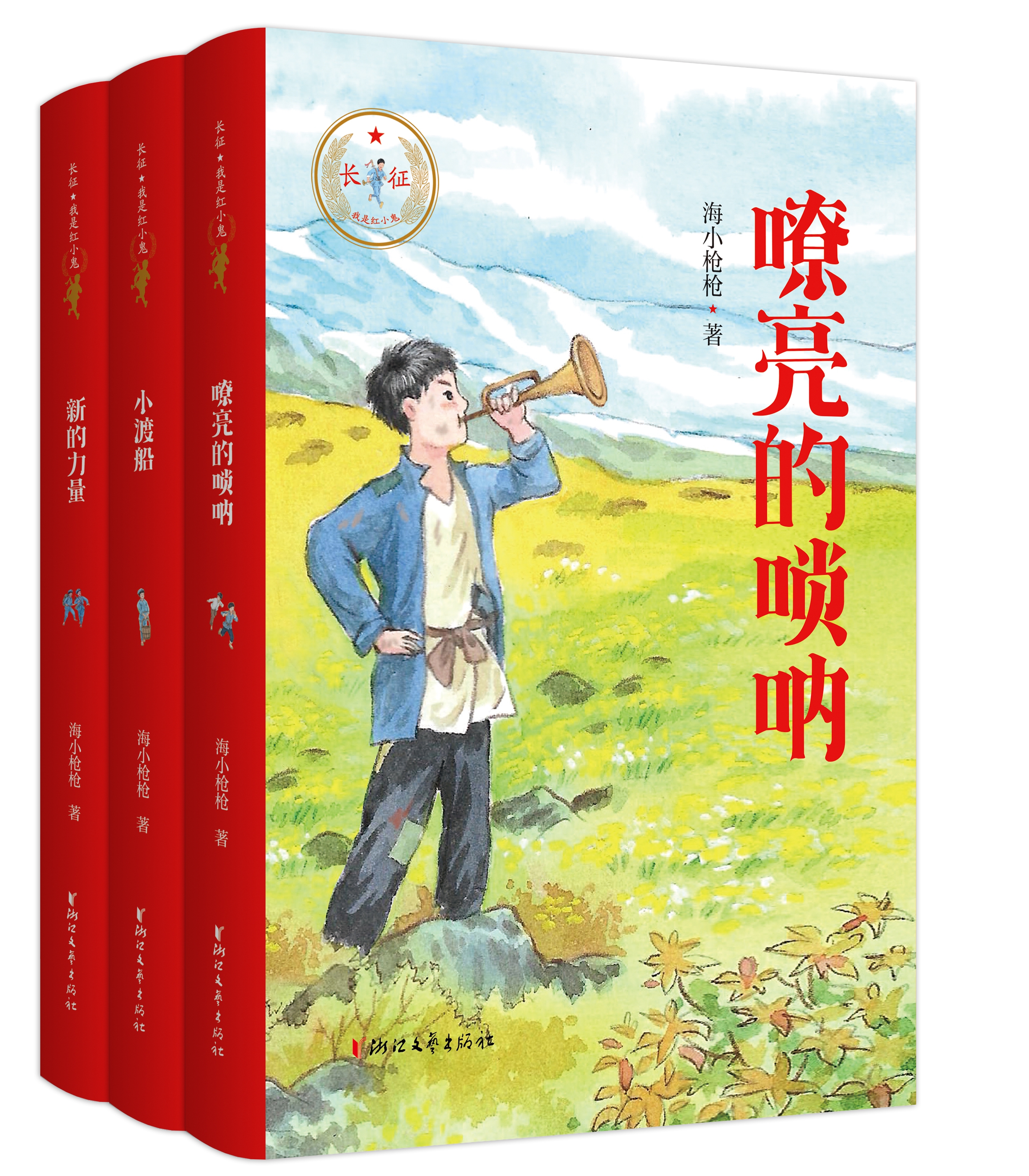“长征·我是红小鬼”系列包括《嘹亮的唢呐》《小渡船》《新的力量》三册,讲述了十二岁的少年王小北在战火中失去了亲人后,带着爷爷留给自己的唢呐投奔红军,并与少年红军班的战友们一起渡大江、过草地,不断历练、勇往直前的故事。