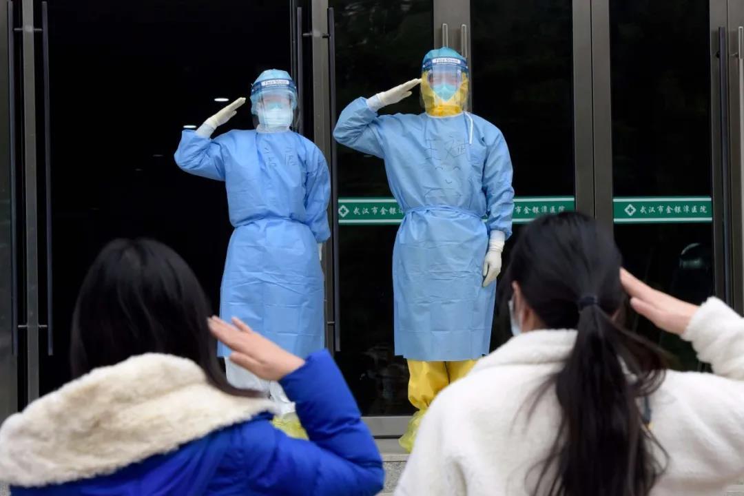 2月1日,武汉金银潭医院收治的第一二例患者出院。临别时,她们向医生王斌、护士唐杰敬礼感谢。她们说:“这个军礼,代表患者对医生的感谢,更代表人民群众对解放军的信任。”