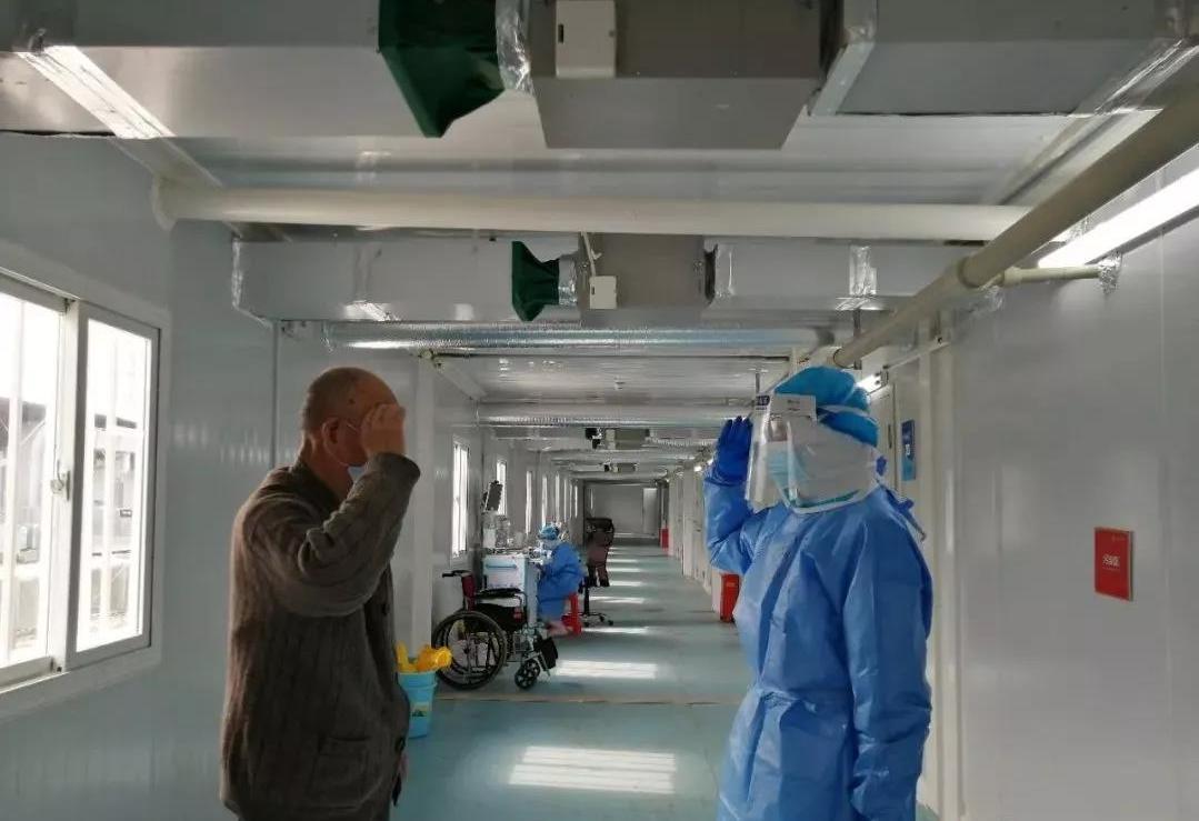 2月22日上午,火神山医院感染四科一病区首批病人出院了,一位90岁的老兵,以一个标准的军礼,向医护人员表示感谢。