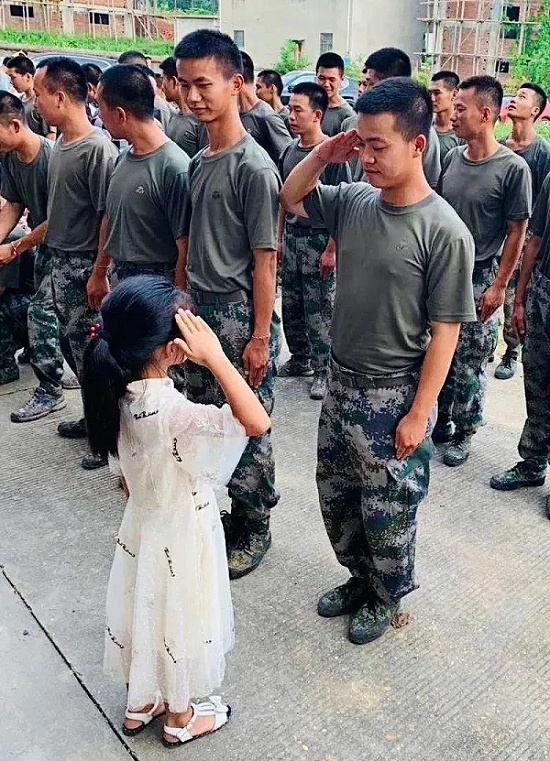 今年七月,连续强降雨引发洪涝灾害,江西九江都昌县受灾严重,第71、72集团军所属部队先后赶赴都昌抢险救援。都昌县幸福里幼儿园师生慰问抗洪官兵,小朋友向解放军叔叔敬礼致谢,官兵敬礼回应。