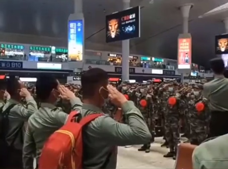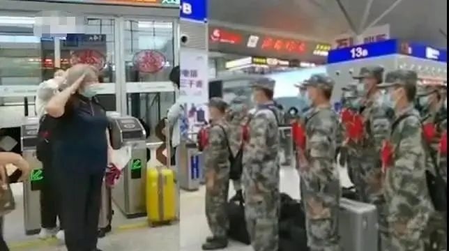 9月15日,在新疆乌鲁木齐火车站候车厅,一群退伍老兵与入伍新兵偶然相遇,互敬军礼,互致祝福!网友感叹,“这是最美的相遇与传承!”