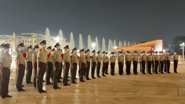 8月29日晚,武警北京总队执勤第一支队执勤一中队在天安门广场举行了一场庄严的哨位告别仪式。伴随着腾空的喷泉,老兵们敬上饱含深情的军礼,向挥洒无数汗水的哨岗告别。