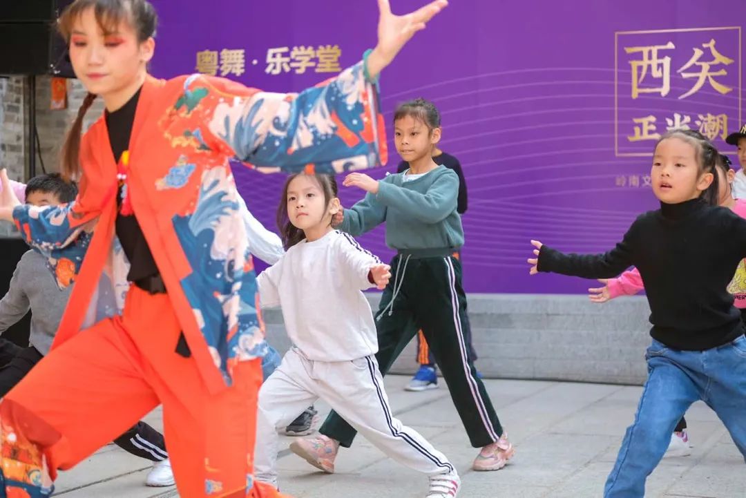 12月20日,荔湾区在广州市西关永庆坊旅游区举行了“西关正当潮——岭南文化之‘粤跃悦舞’”主题文艺活动。活动在乡愁广场、钟书阁以及永庆坊新时代文明实践站三个区域设置“打卡点”,“西关小姐”化身舞蹈家,通过情景互动以及快闪式的表演,把爵士舞、现代舞、街舞三类不同的舞种糅合演绎,带领市民游客玩转永庆坊,让西关粉丝们享受了一场传统粤剧、咏春文化与现代舞蹈艺术碰撞带来的视听盛宴。