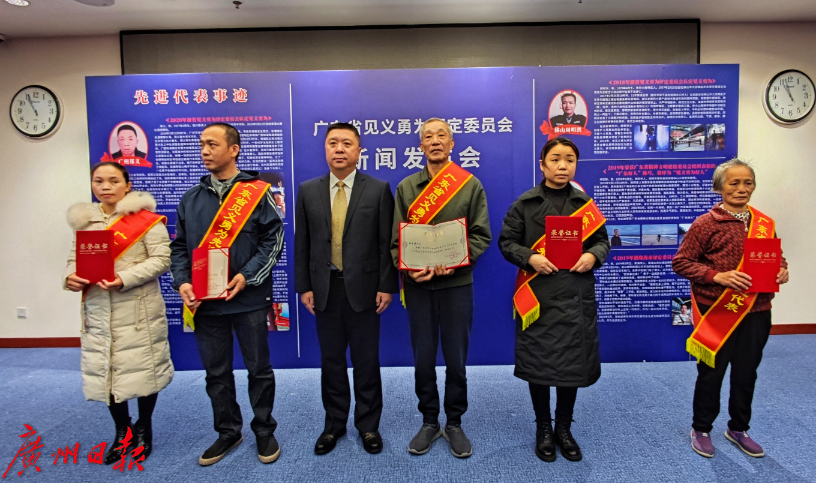 12月23日,广东省见义勇为评定委员会召开发布会,介绍全省见义勇为人员奖励和保障工作情况,并通报表扬郑义、柯石磷、黎秋雄、梁风仙、周明洪5名广东省见义勇为先进代表。