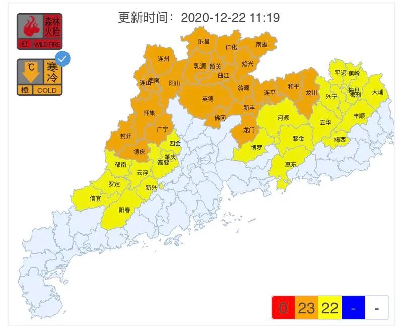 韶关“入冬”了,广东其他城市情况如何?根据广东省气象部门的统计,截至12月22日,韶关暂时是广东唯一一个全境入冬的城市。