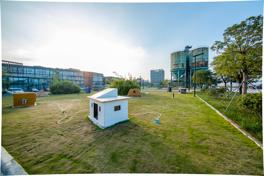 工美港儿童美术馆位于工美港园区江边草坪上,是一座户外美术馆,由10个小型户外互动装置组成,兼具美术馆的功能。这些装置有的是个能看到天空的皇冠,有的是架像恐龙的楼梯,有的则是纯白的小房子,色彩形状各异。他们都是由10位5-12岁的儿童亲自设计创造,代表了他们对美术馆的不同想象。