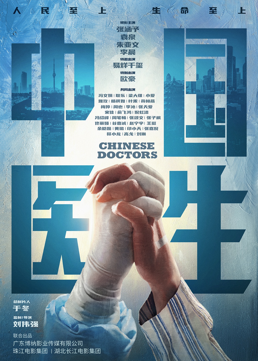 电影《中国医生》根据2020年新冠肺炎疫情防控斗争的真实事件改编,以武汉市金银潭医院为核心故事背景,同时兼顾武汉同济医院、武汉市肺科医院、武汉协和医院、武汉大学人民医院(湖北省人民医院)、火神山医院、方舱医院等兄弟单位,以武汉医护人员、全国各省市援鄂医疗队为人物原型,全景式记录波澜壮阔、艰苦卓绝的抗疫斗争。影片由张涵予、袁泉、朱亚文、李晨领衔主演,易烊千玺特邀出演,欧豪特别出演。将于2021年在全国上映。