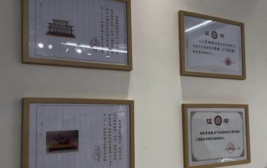通过几年的实践,曾氏父子更感觉要将榄雕传承和发展下去,师资队伍必不可少。因此,在海珠区文化馆的帮助下,“曾氏榄雕研学传承基地”在环境优美的晓港公园正式落户。宽敞明亮的场地足以满足定期举办面向教育层面以及广大学子的公益培训课程的需求。